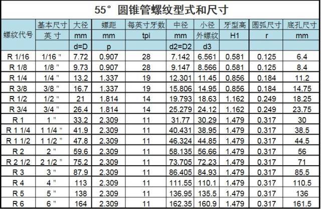 55°圓錐管螺紋,是指螺紋的牙型角為55°、螺紋具有1:16的錐度。該系列螺紋在世界上應用廣泛,它的代號,各國規定不同。
